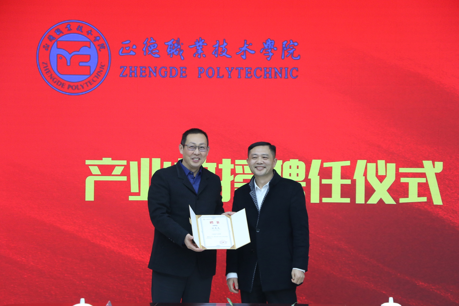 产业教授、艺术顾问聘任仪式暨正德-格力产业学院表彰会伊始,集体观看“正德-格力产业学院两周年专题片”,视频回顾了产业学院两年来的建设和发展历程。为强化“双师型”教师队伍建设,深化企业员工与未来员工融通培养、推动企业高级专家深度参与我院专业建设、科学研究、人才培养与教育教学,推动我院教师服务企业、深度参与公司艺术活动指导,现场举行了正德职业技术学院产业教授聘任仪式和格力电器(南京)有限公司艺术顾问聘任仪式。格力电器(南京)有限公司总经理刘克光受聘担任我院产业教授,我院教师孟馨受聘担任格力电器(南京)有限公司艺术顾问。