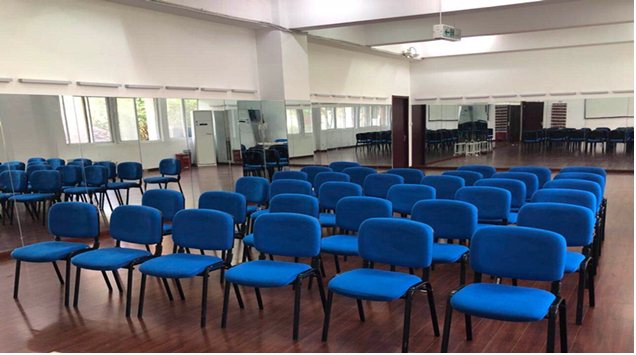 服务礼仪实训室:实训室占地面积为80㎡,配有音响、玻璃镜、化妆台等。可同时满足40名学生进行化妆、站姿、行走、礼仪、播音等。