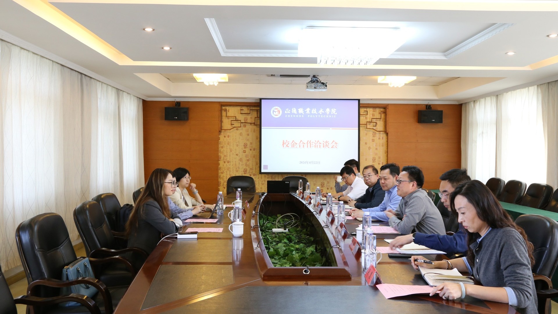 会上,孙永荣首先代表学院对两家企业领导来院开展校企合作洽谈表示欢迎,并简要介绍了学院的基本情况和办学特色。随后,赵凯雷介绍了学院办学规模、办学特色和发展愿景,以及学院紧扣区域产业发展变化趋势,优化专业设置,推进校企合作、产教融合等改革举措。