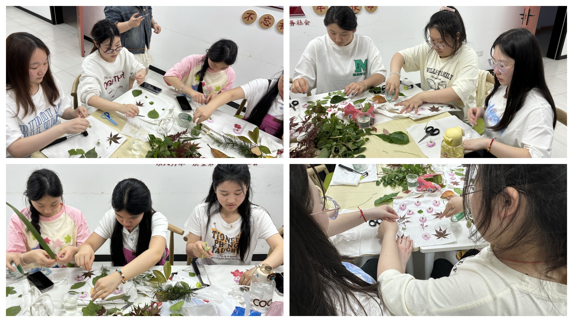 仲春之际,绿意葱茏,生命蓬勃生长,传承之志,文化为基。为深入践行文化传承创新,培养大家的创造力与审美能力,促进同学们身心发展。4月17日晚上6点基础教育系在南三一站式社区开展“拓花草之印 染自然之美”植物拓染非遗手作活动,于一方布帛之上,拓印出传统文化的绚丽篇章。