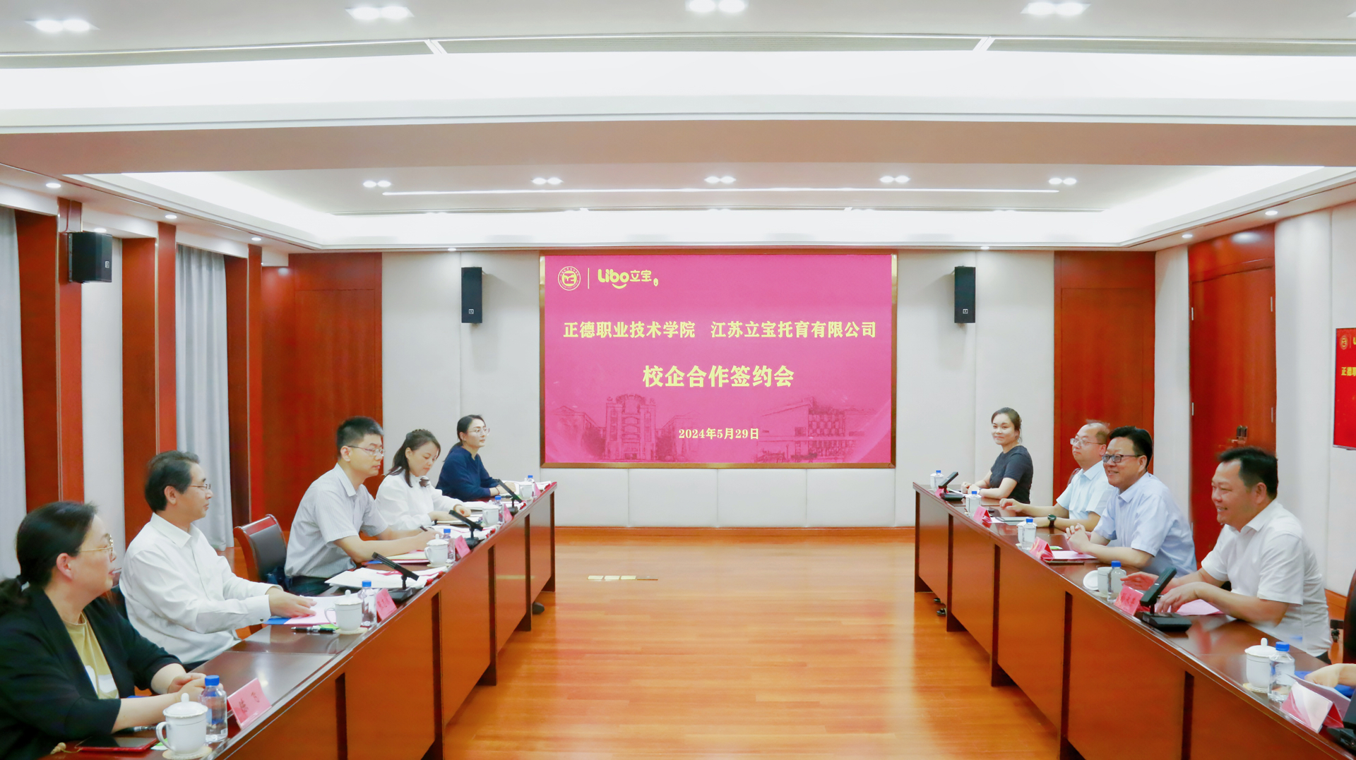 5月29日下午,正德职业技术学院(以下简称“正德学院”)与江苏立宝托育有限公司(以下简称“立宝托育”)举行了校企合作签约仪式。南通市保障房建设投资集团有限公司(以下简称“南通房投”)董事长张志泳,南通房投副总经理、立宝托育董事长张亮,南通房投财务管理部部长陈飞,立宝托育总经理张小茱、副总经理刘立峰、区域园长丁杰一行,正德学院院长孙永荣、副院长赵凯雷、梁薇,院长助理王伟、王墀以及相关部门主要负责人共同出席签约仪式,仪式由梁薇主持。