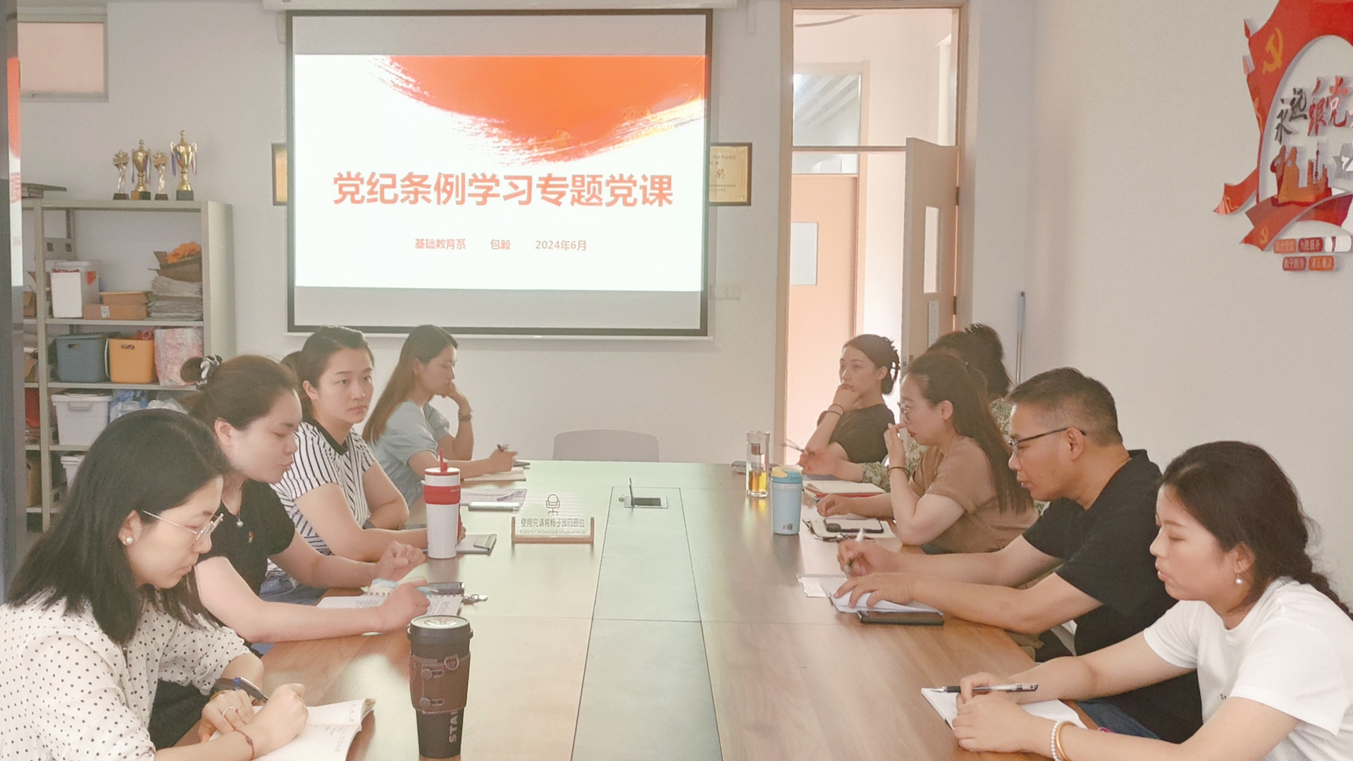 2024年6月13日,基础教育系党支部召开党纪条例学习专题党课教育。党支部全体党员、入党积极分子与相关教师参加党课教育。