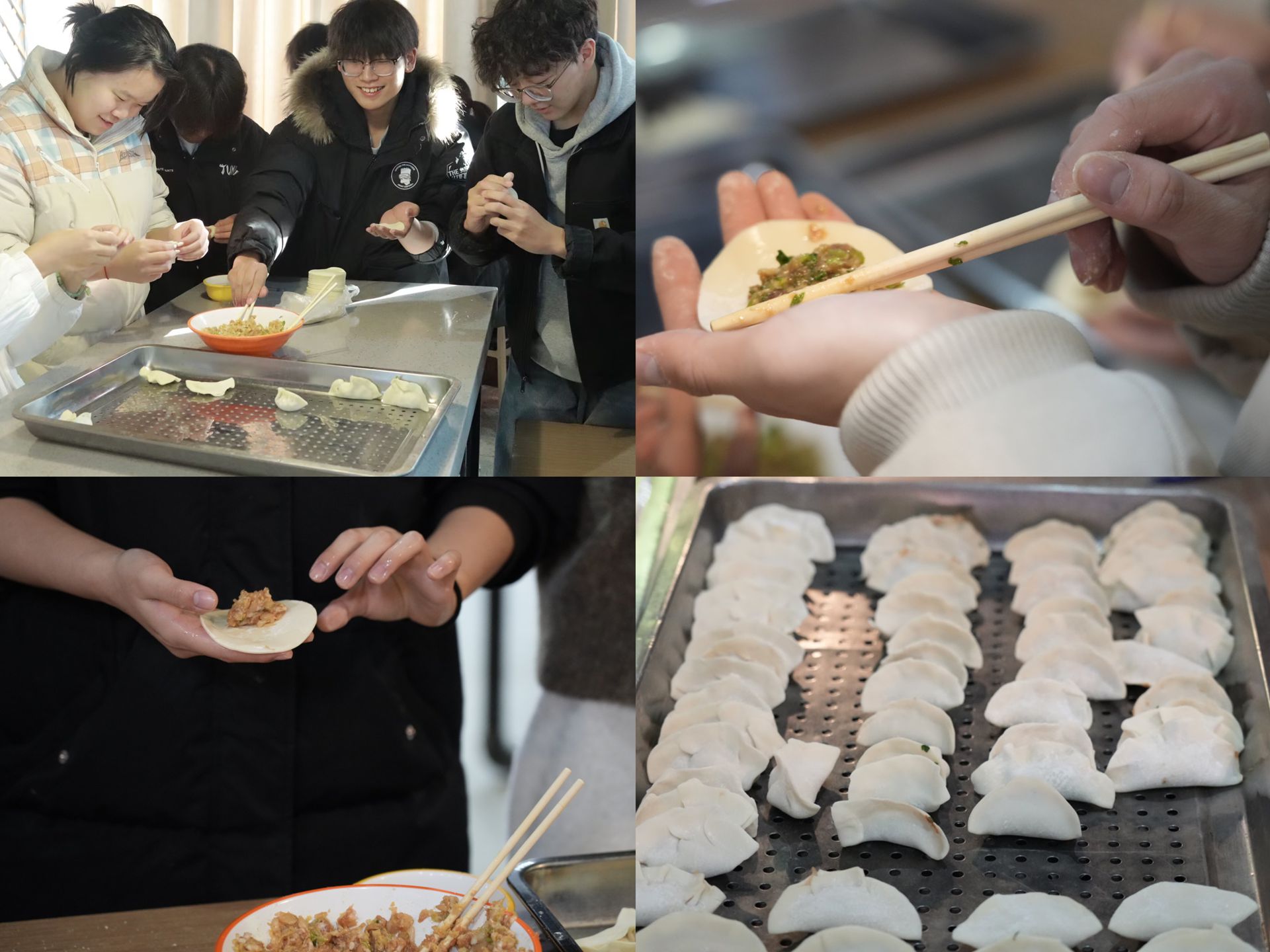 活动开始时,大家围在长桌旁,分工明确,纷纷挽起袖子,大展身手。有的手法娴熟,包出的饺子精致美观;有的略显生疏,但在现场指导下也逐渐掌握了技巧。不一会儿,形状各异的饺子就出现在了众人的面前,各式各样的饺子,有柳叶形的、元宝形的、半月形的,还有的同学别出心裁,将饺子包成小笼包形、玫瑰形等,创意满满,笑声不断。在包饺子过程中,同学们不仅交流了包饺子的技巧和经验,还分享了各自家乡冬至的传统习俗和饮食文化。这不仅增进了彼此之间的了解,还促进了文化的传承与交流。