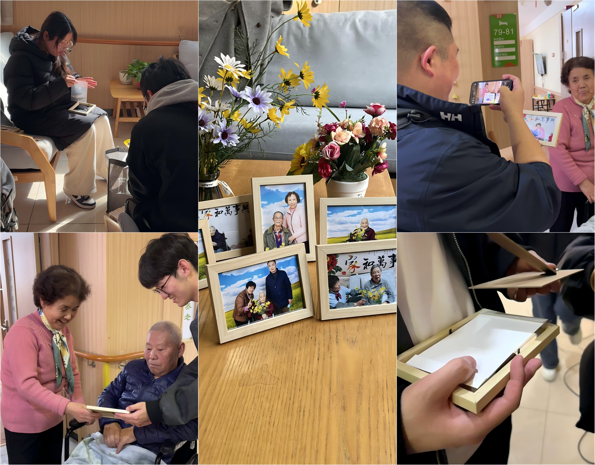 这场活动远非单方面的馈赠。“孩子们拍的真好,真专业啊”,张爷爷握着学生手绘的祝福卡感慨。而学生们在调整构图时读懂了皱纹里的智慧,在整理被角时体悟了生命的重量——这场对话,让银发成为美育课堂的生动教材,让青春在生命叙事中沉淀成长。
