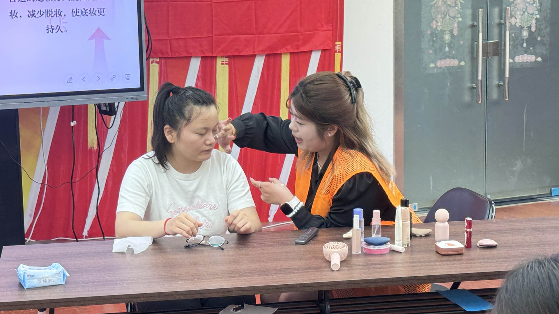 活动当天,志愿者们早早来到社区活动中心,精心准备了各类化妆工具和教学资料。夜校的学员们大多是社区的居民,年龄从青年到中年不等,大家对化妆课程充满了期待。活动伊始,志愿者们首先向学员们介绍了化妆的基本知识,包括肤质的判断、化妆品的选择以及日常护肤的重要性。随后,他们通过现场演示,详细讲解了不同场合下的化妆技巧,从基础的底妆到眼妆、唇妆的打造,每一个步骤都讲解得细致入微。