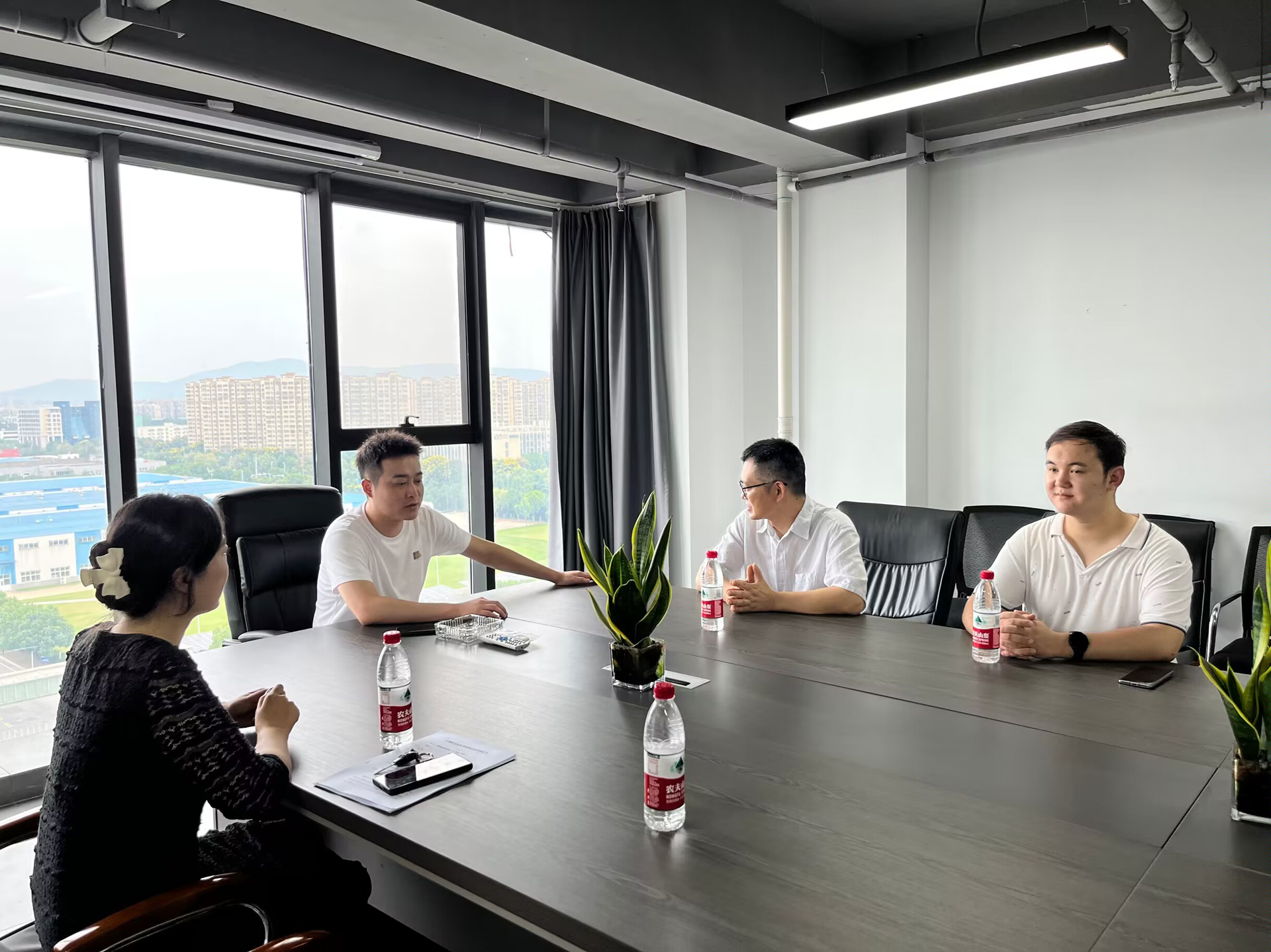 为进一步落实学校访企拓岗促就业专项行动,推进我院毕业生多维度、高质量就业,9月19日,艺术设计与建筑工程系周卫、杨瀛、吴青、夏正宇深入企业为毕业生开拓就业新渠道,走访了南京交换空间家具有限公司(江宁旗舰店),与戴总进行了合作交流,目前校企双方共同探讨合作协议内容,初步达成合作意向。