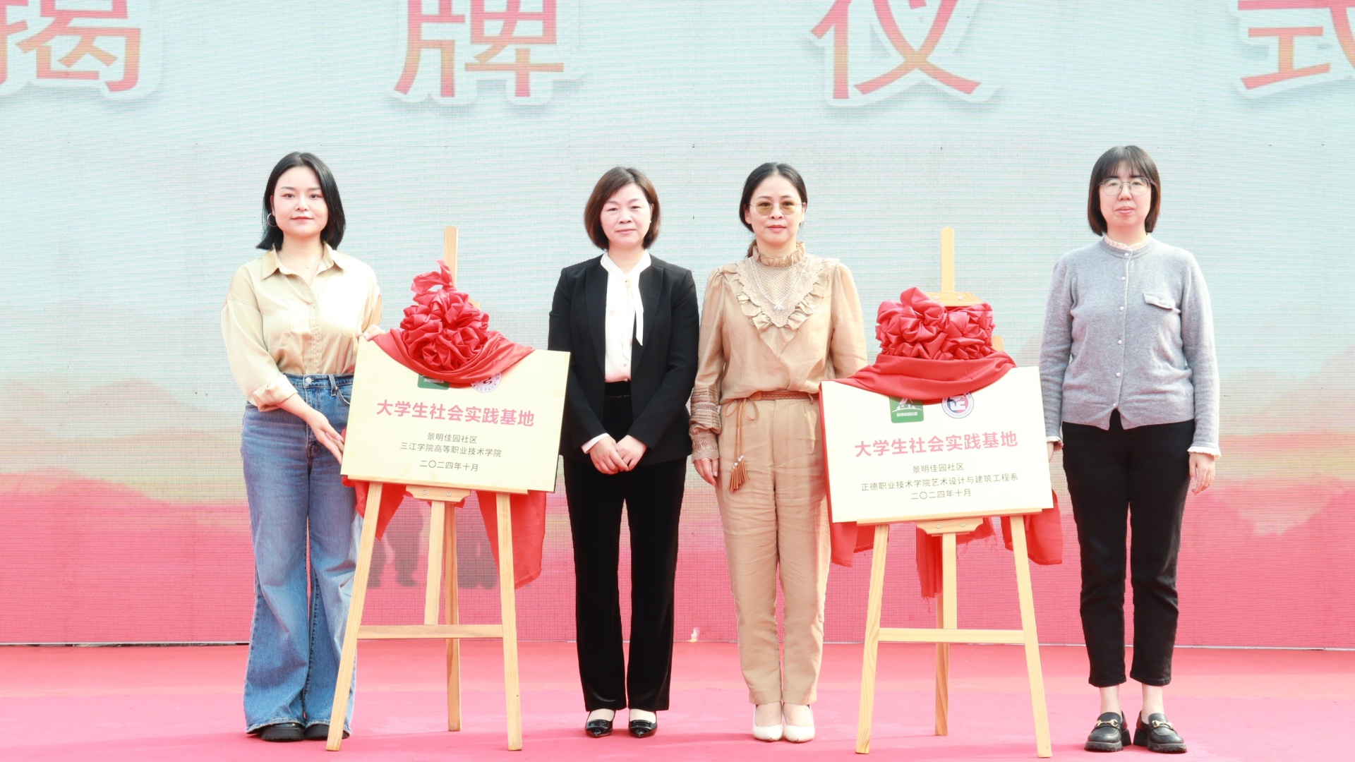 10月15日上午,为深入贯彻落实习近平总书记关于青年工作的重要思想,进一步加强基层党组织党建工作,推动学校“实践育人”工作扎实开展,正德职业技术学院艺术设计与建筑工程系党支部与南京市铁心桥街道景明佳园社区共同举办了“大学生志愿服务基地”共建揭牌仪式。此次活动在景明佳园社区红旗广场圆满举行,标志着双方合作迈入新阶段。正德职业技术学院艺术设计与建筑工程系党支部书记、副主任杨春娟,景明佳园社区党委书记李正红,以及街道养老工作人员、社区各共建单位代表和志愿者们共同见证了这一重要时刻。仪式上,双方代表共同揭开了“大学生志愿服务基地”的牌子,并签署了结对共建协议。