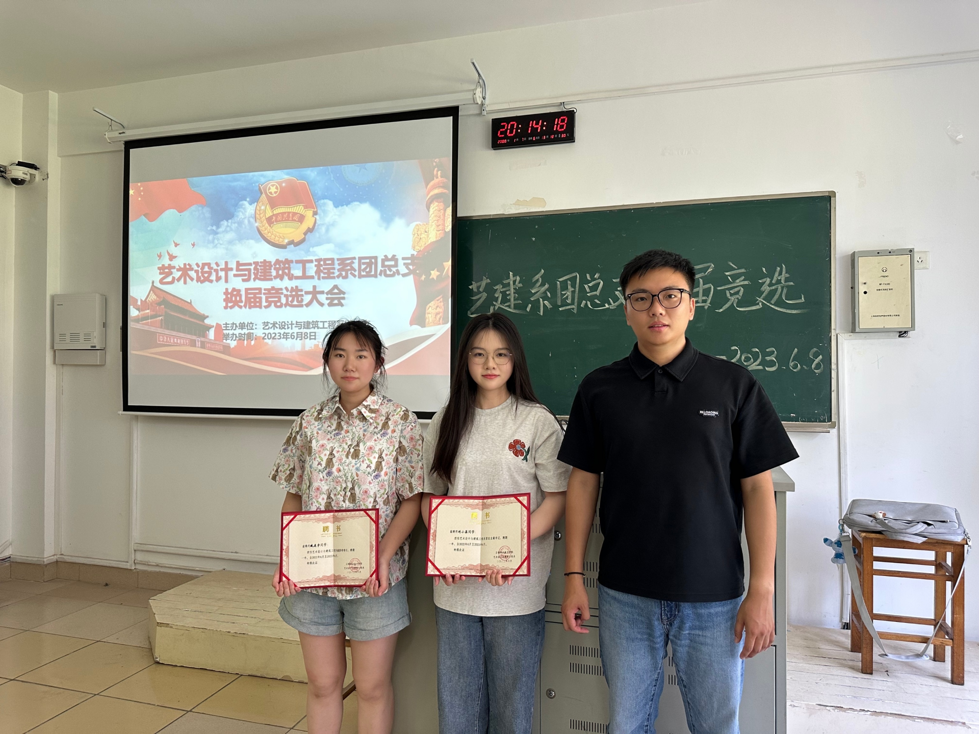 最后,党支部书记陈宏波对各学生会干部颁发聘书并对本次述职评议大会进行总结。对艺建系学生会干部一年以来的辛勤付出表示感谢,并表示未来一届学生会的同学们要不断提高思想觉悟并及时在活动中总结经验教训、定期反思、树立全局意识,要继续保持认真严谨的工作态度,牢记服务宗旨,希望学生会在未来能够以更加饱满的姿态持续前进。同时,加强部门内的沟通交流,多与其他兄弟系部学习交流。