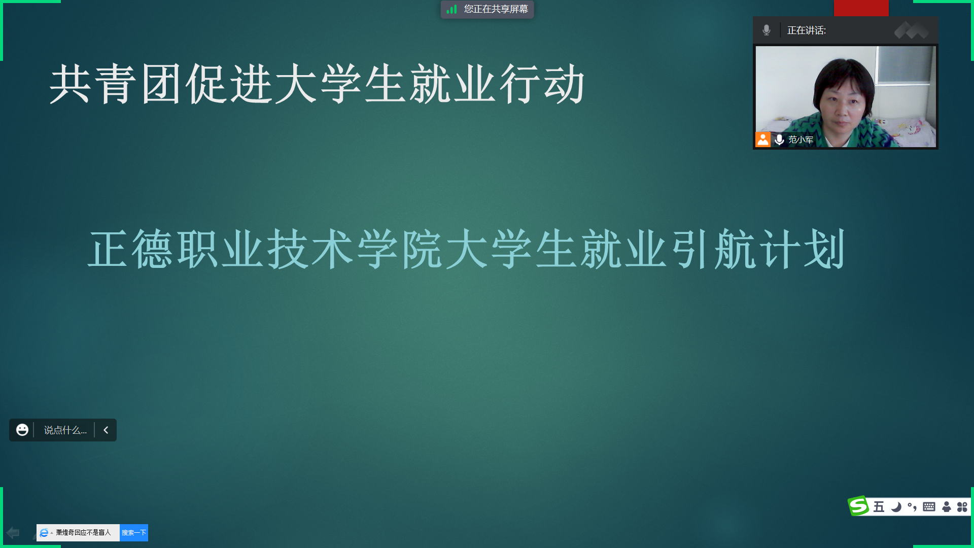 此外,我系还针对大二即将进行顶岗实习的学生,开展“共青团促进大学生就业行动—正德职业技术学院大学生就业引航计划”主题班会。辅导员通过宣讲国家大学生就业政策,分享优秀校友就业事迹,引导即将步入职场的学生立足实际,找准定位,树立理性、平实的择业观和就业观,仰望星空,脚踏实地,艰苦奋斗,成长成才。