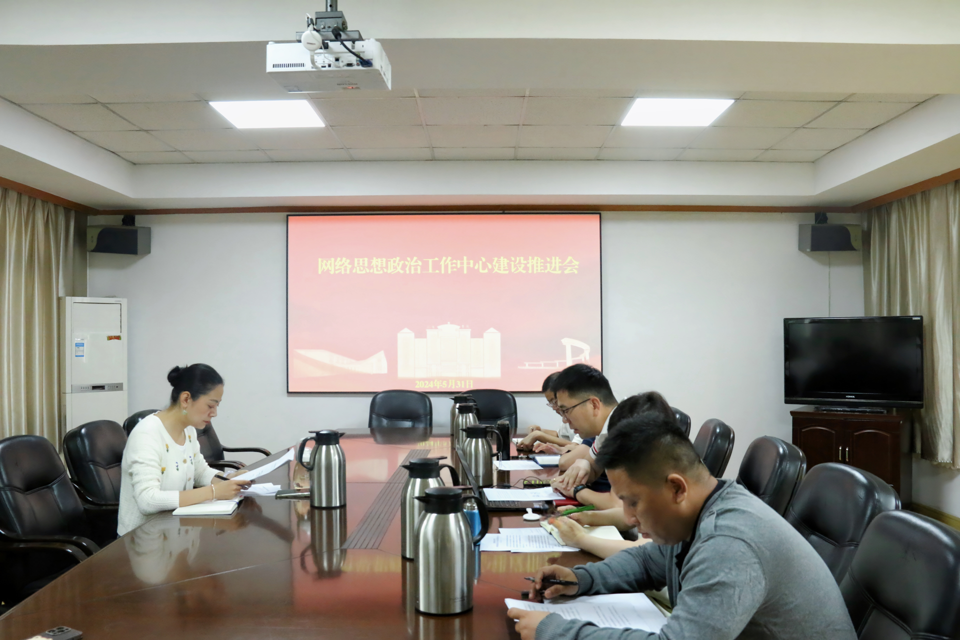 为认真学习贯彻习近平新时代中国特色社会主义思想和党的二十大精神,深入实施“时代新人铸魂工程”,加强我院网络思想政治工作建设,加快形成立体化网络思政育人新格局,5月31日上午,我院召开网络思想政治工作中心建设推进会。院党委副书记、副院长梁薇,党群工作部、学生工作部、后勤保卫处、思政教研部、团委主要负责人参加,会议由党群工作部部长祖国主持。