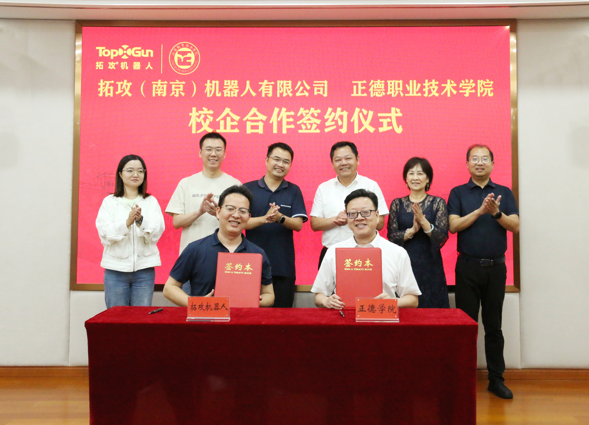 6月18日,正德职业技术学院与拓攻(南京)机器人有限公司举行了校企合作签约仪式。拓攻机器人联席CEO尹亮亮,自动驾驶技术研究院院长徐进、教育事业部经理杨有运、工业设计总监田静,正德学院院长孙永荣,副院长赵宇、赵凯雷,院长助理、党政办主任王伟,院长助理、招生就业处处长王墀以及相关部门负责人出席签约仪式。仪式由赵宇主持。