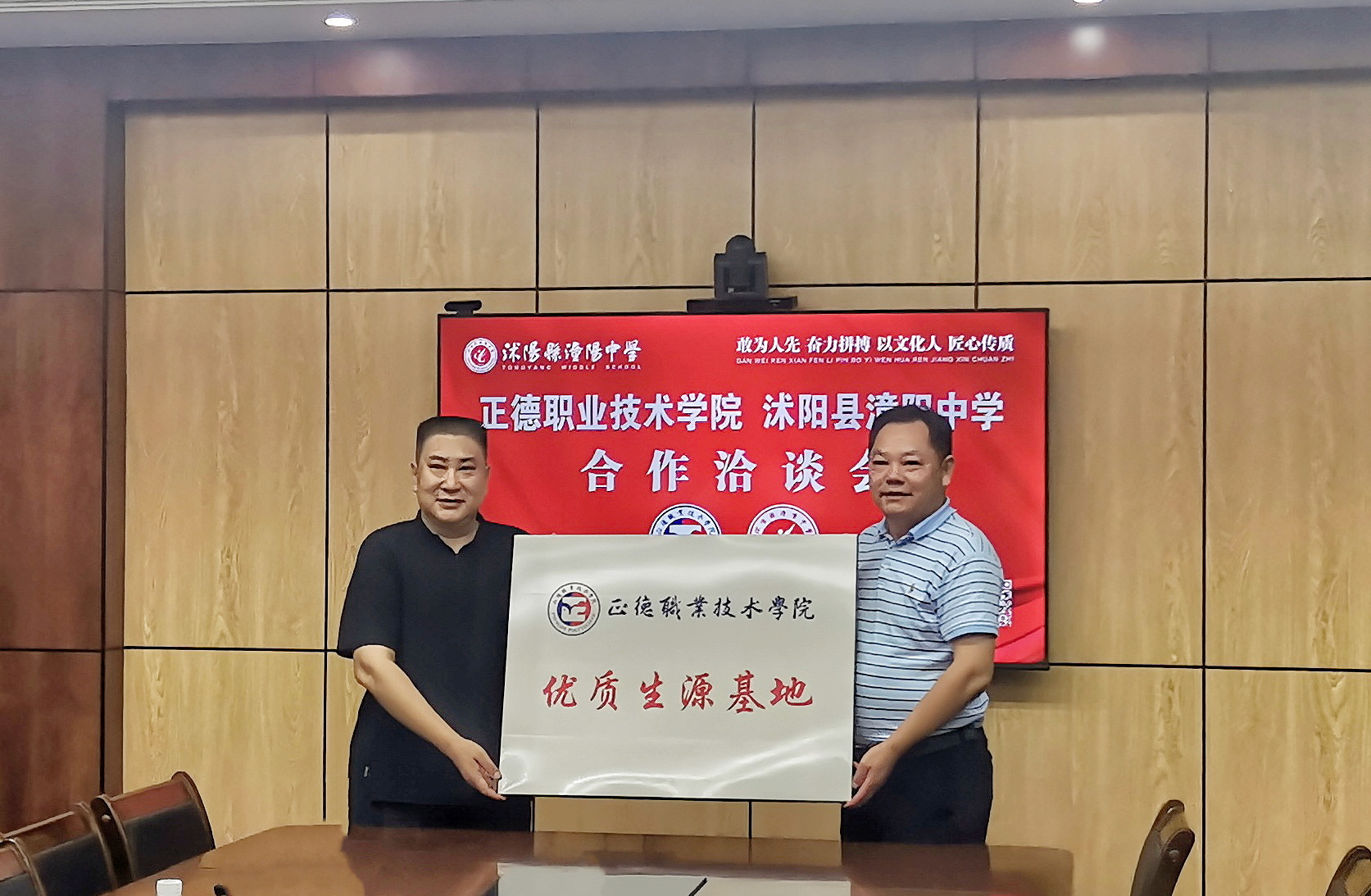 孙永荣一行还前往沭阳县潼阳中学,和潼阳中学范威校长等领导共同出席正德职业技术学院“优质生源基地”授牌仪式。范威表示,潼阳中学是国防教育特色学校,与正德学院办学定位契合度高,“优质生源基地”的设立为双方友好合作奠定良好基础。孙永荣介绍了学院近年来的发展情况和教育教学改革、招生就业等方面取得的成绩。他指出,潼阳中学优质生源基地的建立,不仅加强了两校的紧密联系,更拓宽了学校培养人才的渠道,希望双方以此次授牌为契机,在推动双方各自人才培养的各环节可以有更为深入的合作。
