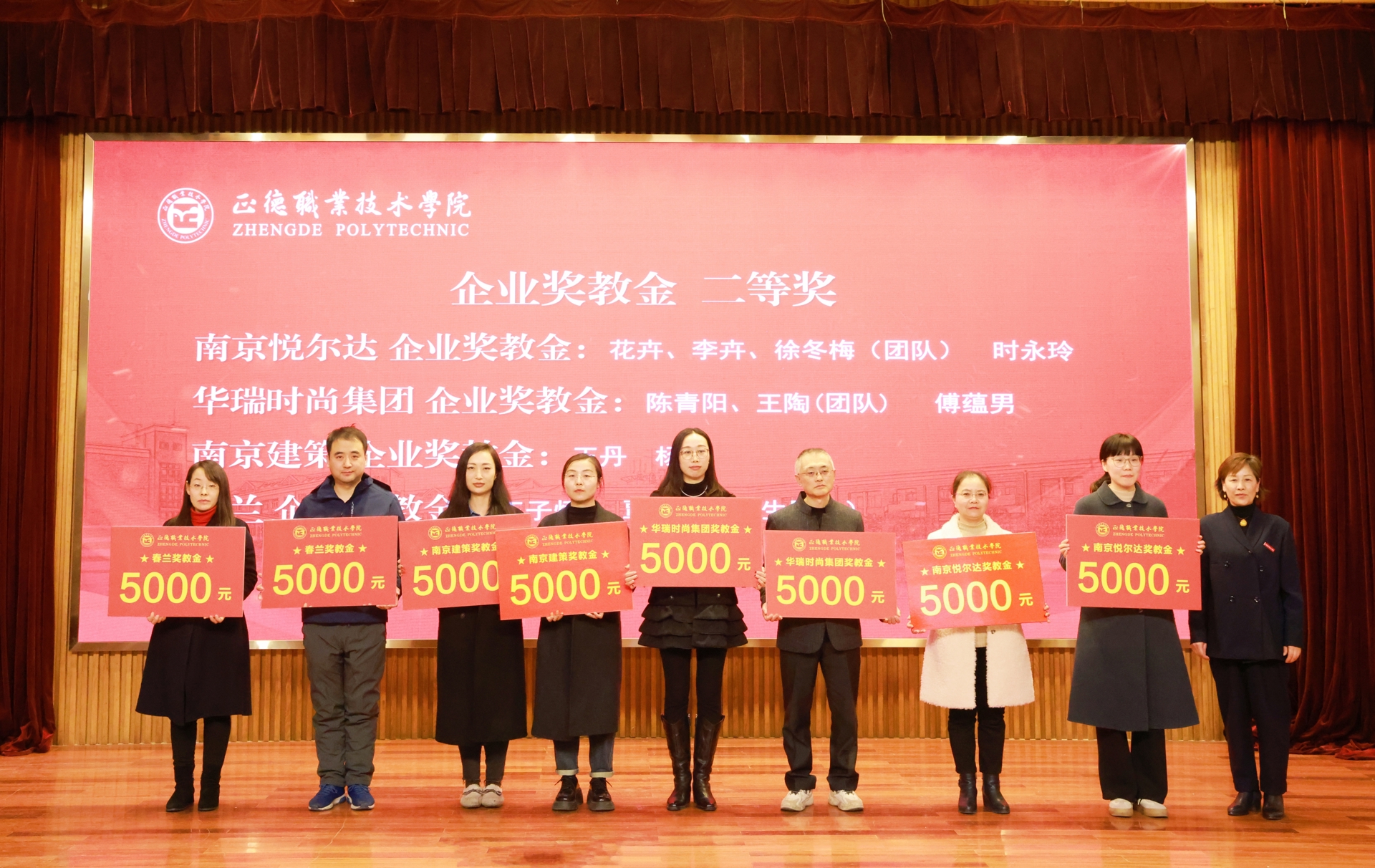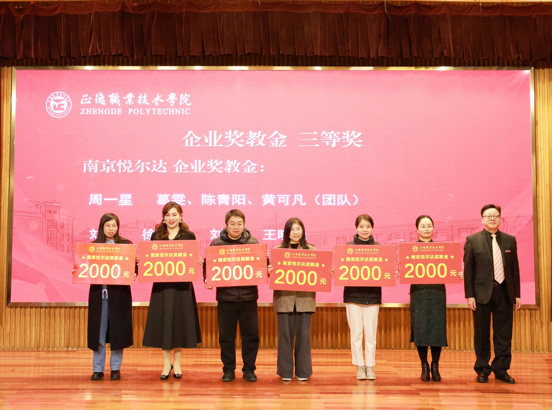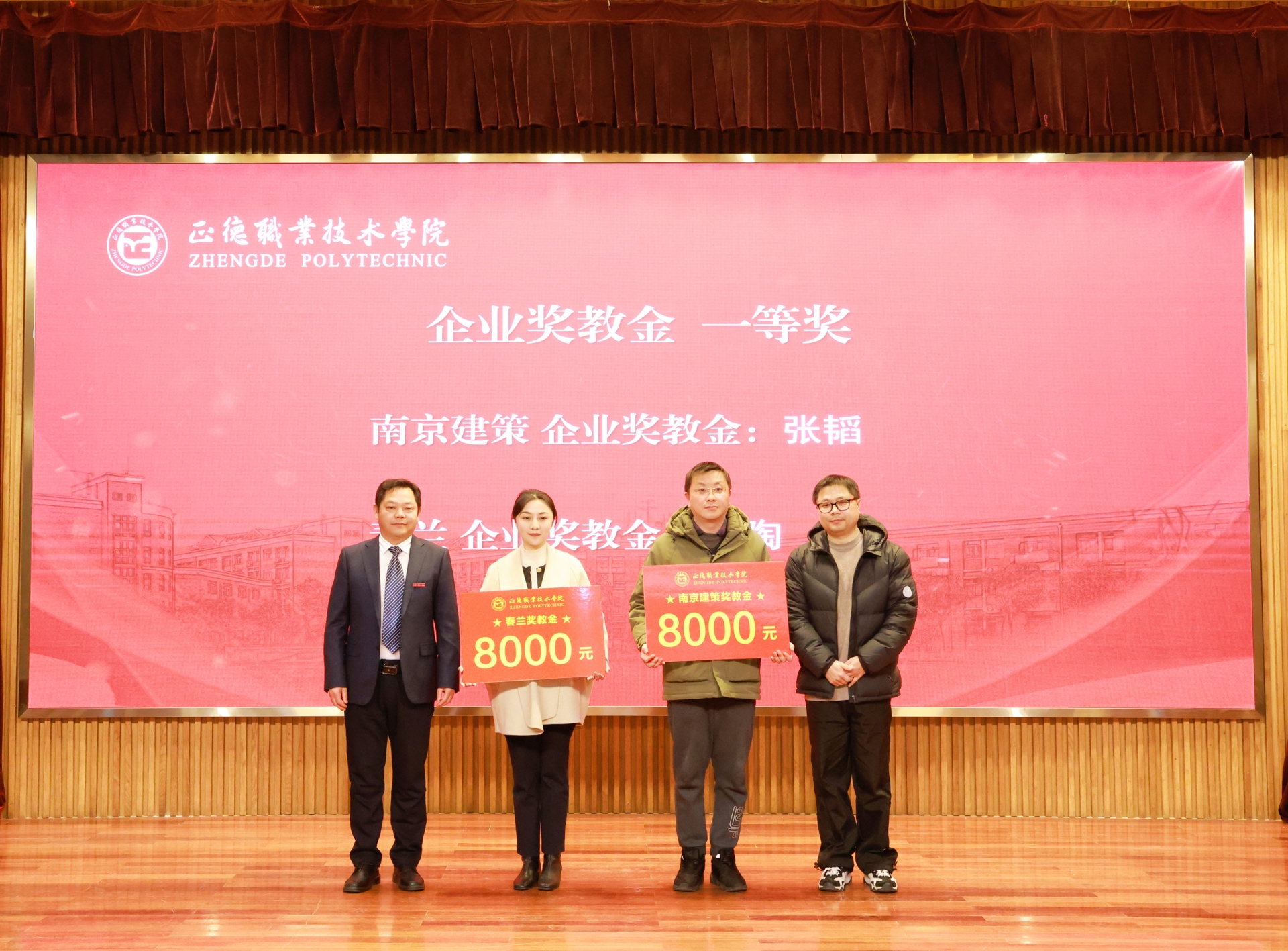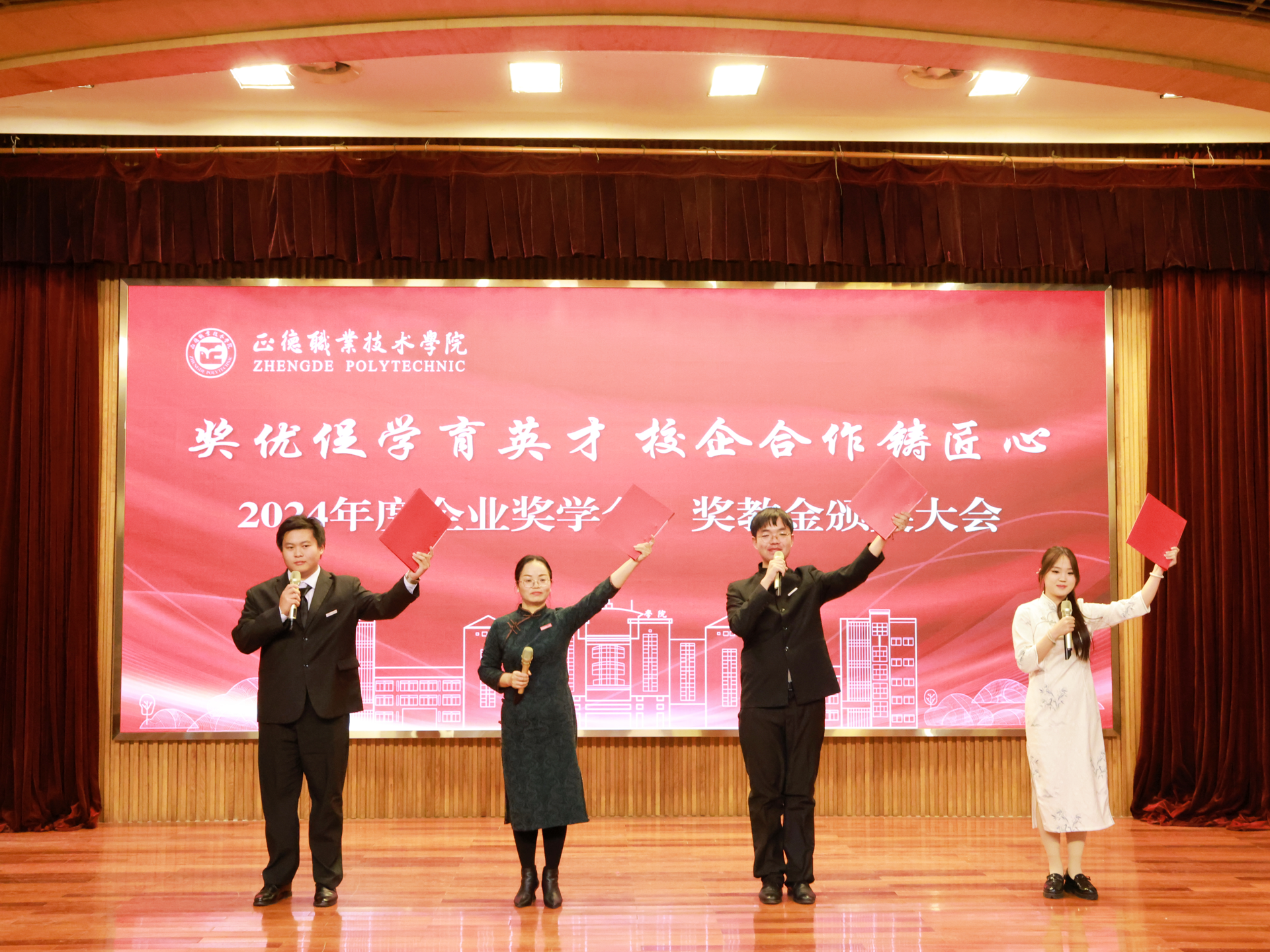 这次企业奖学金、奖教金颁奖大会是正德学院办学历史上的首次,7家企业在校设立企业奖学(教)金,金额高数量多,充分体现了企业对学院办学实力和人才培养质量的高度认可。2024年,我院产教融合工作步入发展快车道:聚焦高端装备、低空经济、“一老一小”等国家战略的产业领域,一年来先后走访了近50家国防军工及行业龙头企业,校企合作单位增长近70%,数量与质量均取得显著突破。积极探索产教融合新模式,与立宝托育、拓攻机器人、南京新手村等企业共建3个高水平实训平台;携手南京建策、上海格思等8家企业,设立了8个订单班,涵盖10个热门专业,全面覆盖所有教学系。校企深度融合,为我院师生构筑了优质的综合实践平台,助力师生在2024年各类竞赛中屡获佳绩。
