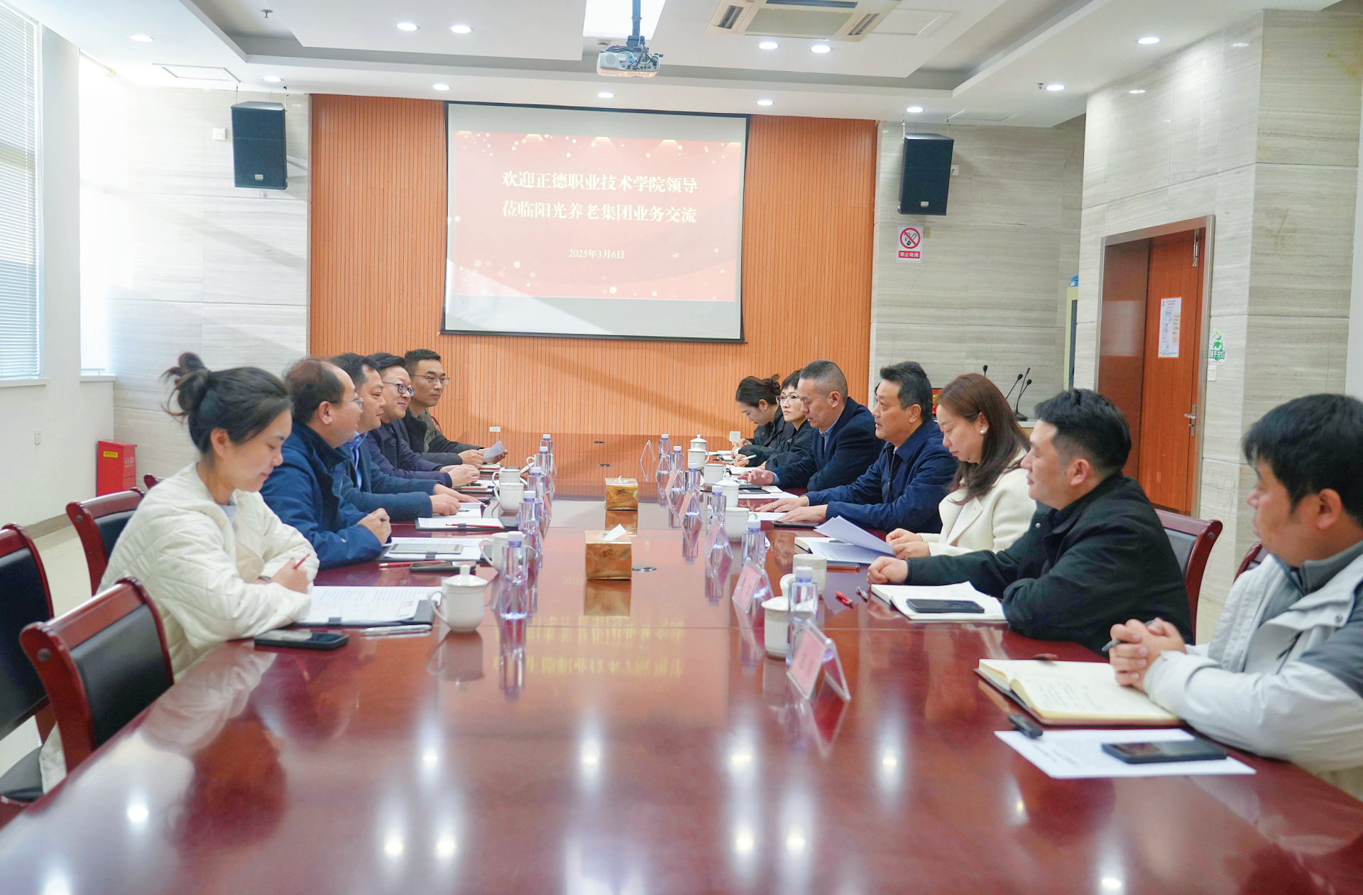 为推进产教融合,校企协同培养养老服务人才,3月6日下午,院长孙永荣带队到南通市阳光养老集团走访交流,受到了房投集团总经理、阳光养老集团董事长王春,阳光养老集团总经理尹建芳、常务副总经理高理、党支部副书记黄凯、副总经理童小燕等领导的热情接待。我院副院长赵凯雷,院长助理、党政办公室主任王伟,院长助理、招生就业处处长王墀,相关系负责人参加座谈交流。