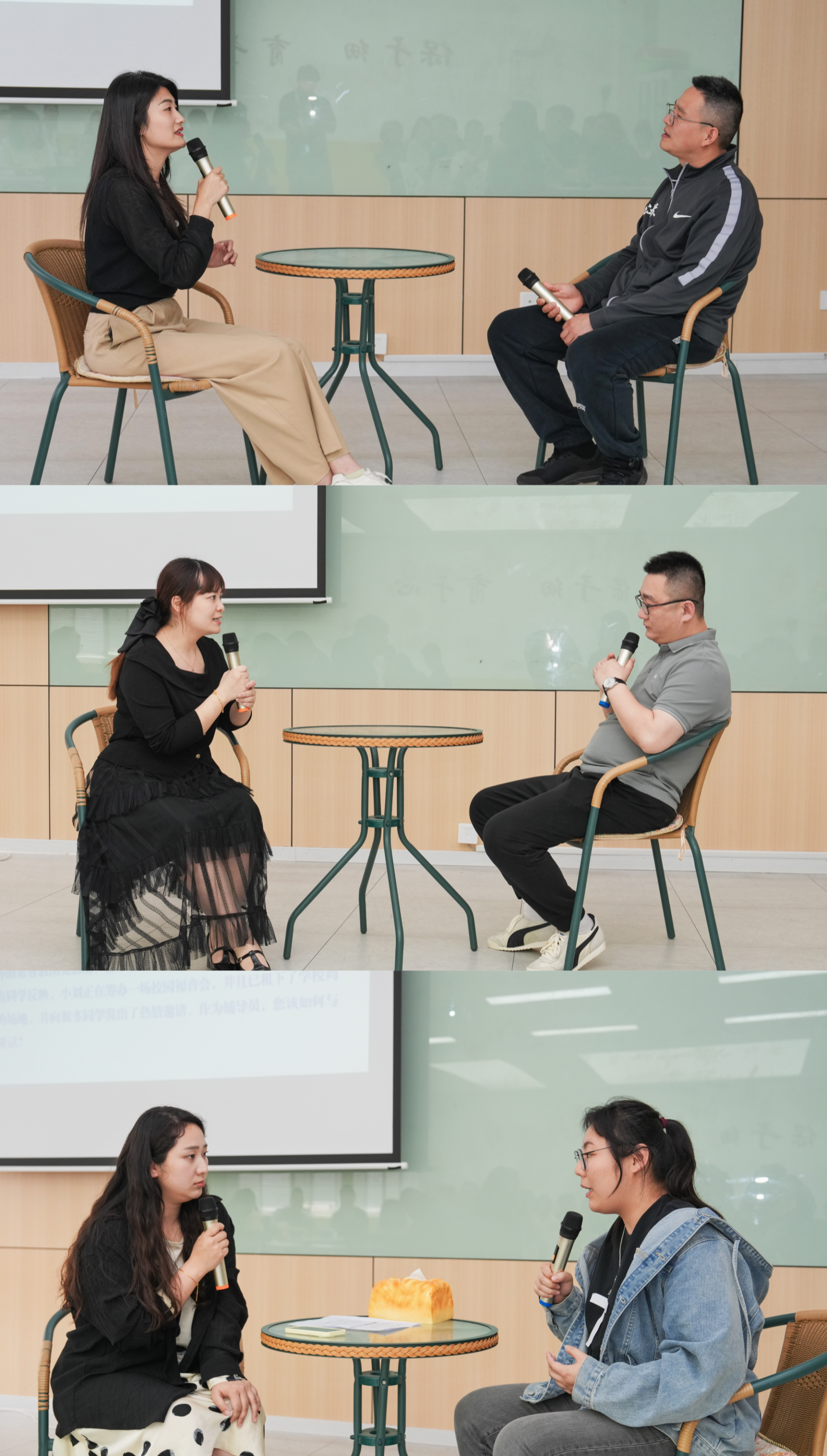 前期经过票选谈心谈话主题,沙龙现场进行了三组生动的对话情景模拟,高度还原了辅导员日常工作中常见的典型场景。情景模拟通过动态的对话展示,直观地将谈心谈话开展教育管理的难点与突破点呈现在大家面前。与会人员围绕这些案例展开了热烈而深入的讨论,大家各抒己见,共同探寻解决问题的最佳方案。群策群力跨系别的交流打破了以往的工作思维定式,为大家提供了全新的视角和思路,有效提升了辅导员的实战能力。