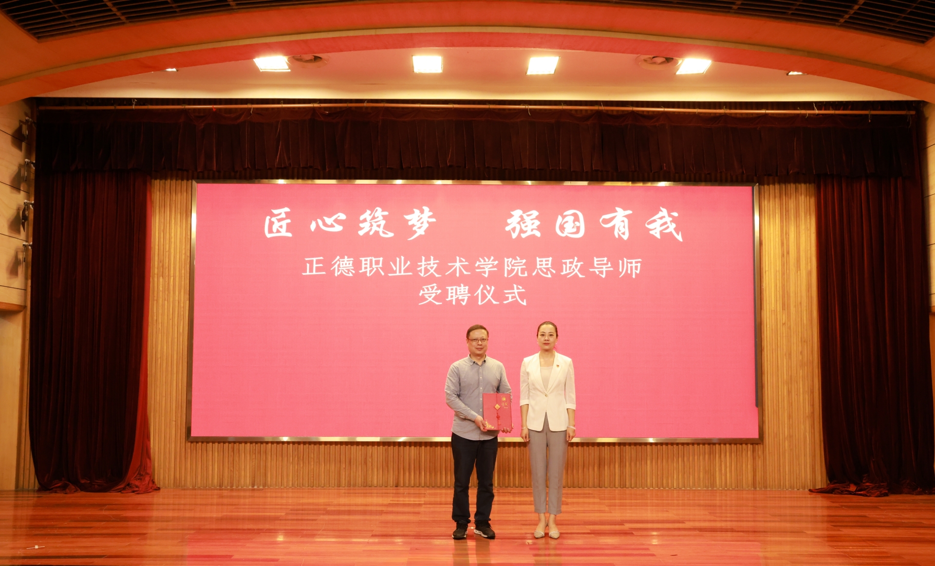 学院聘请胡胜为我院思政导师,梁薇为其颁发聘书。