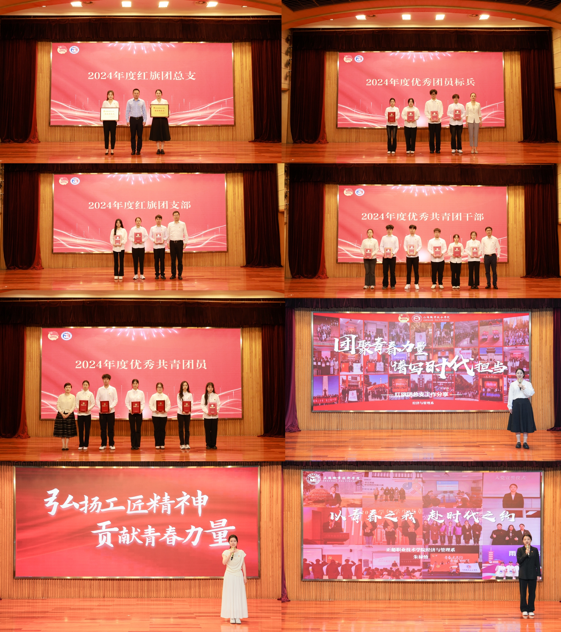 院团委书记黄晓帆宣读《关于表彰正德职业技术学院2024年度优秀团员、优秀团干部、优秀团员标兵和红旗团支部、红旗团总支的决定》,与会领导为受到表彰的集体和个人颁奖。