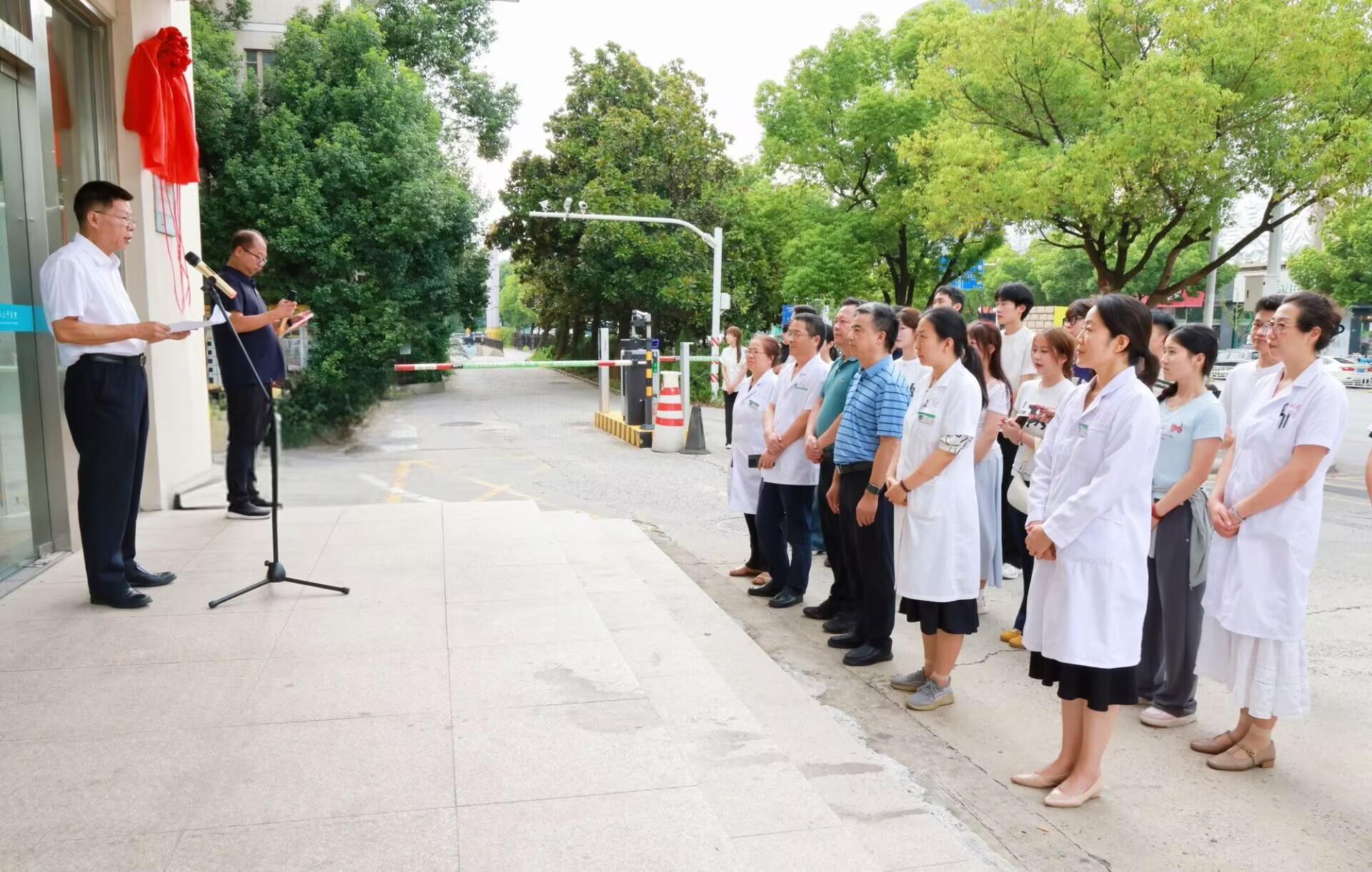 在与会人员的共同见证下,黄炳辉、孙永荣、陆晖、高斌、夏明川共同为正德服务点揭牌,随着红绸缓缓落下,正德学院医疗卫生服务点正式启用,标志着南航校医院优质医疗资源全面向我院师生开放。