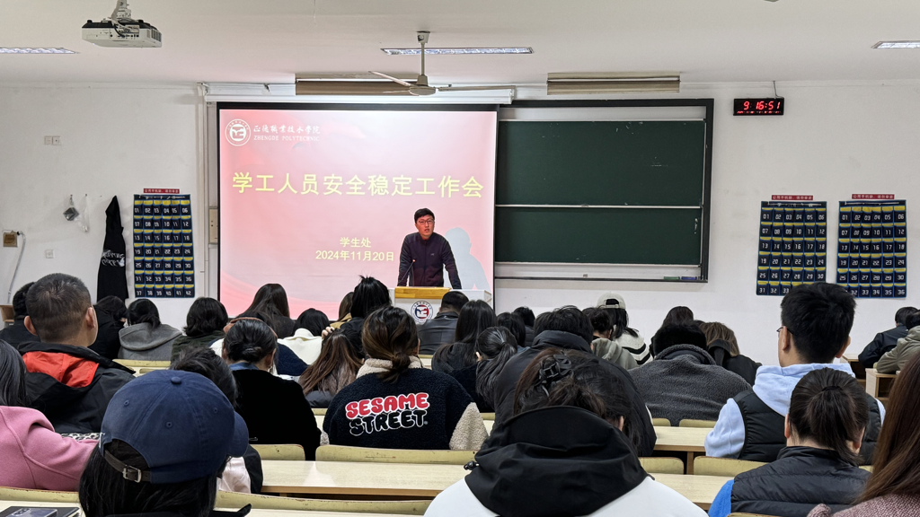 为深入贯彻并积极响应上级部门关于加强校园安全稳定工作的明确要求,严守校园安全工作底线,提高师生安全防范意识。我院于11月20日组织召开了学工人员安全稳定工作会议。学生处、后勤保卫处负责人,各系学生工作负责人以及全体辅导员参会。会议由学生处处长祝佳俊主持。