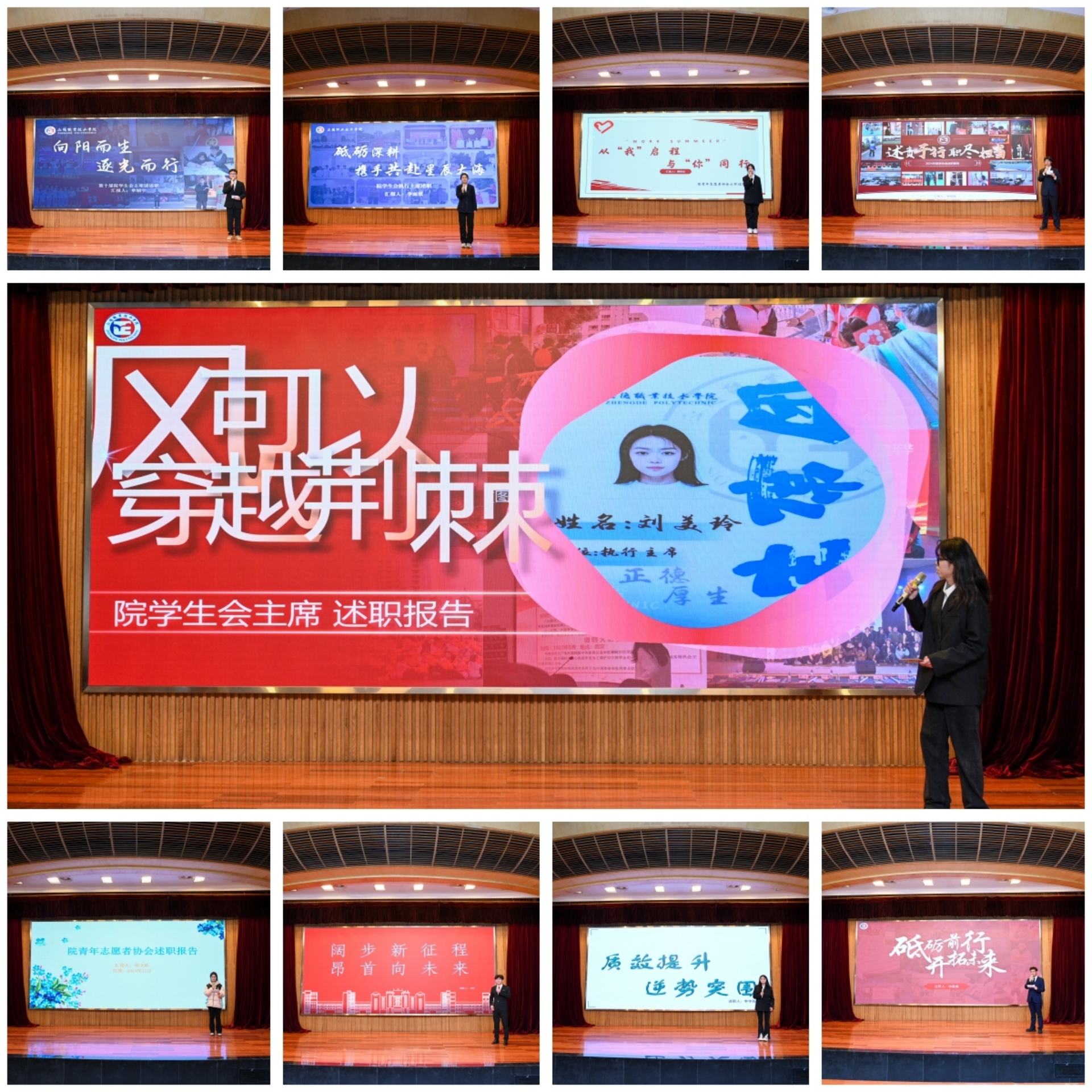 为贯彻落实团中央、教育部、全国学联《关于巩固高校学生会(研究生会)改革成果的若干措施》,进一步深化新时代高校学生组织改革和建设成果,不断提升同学满意度、大局贡献度和学校认可度,院团委于12月23日在报告厅开展了2024-2025学年第一学期院级学生组织述职评议工作。院团委书记黄晓帆、副书记魏兴彪,各院级学生组织和社团负责人,学生代表共计300余人参加活动。