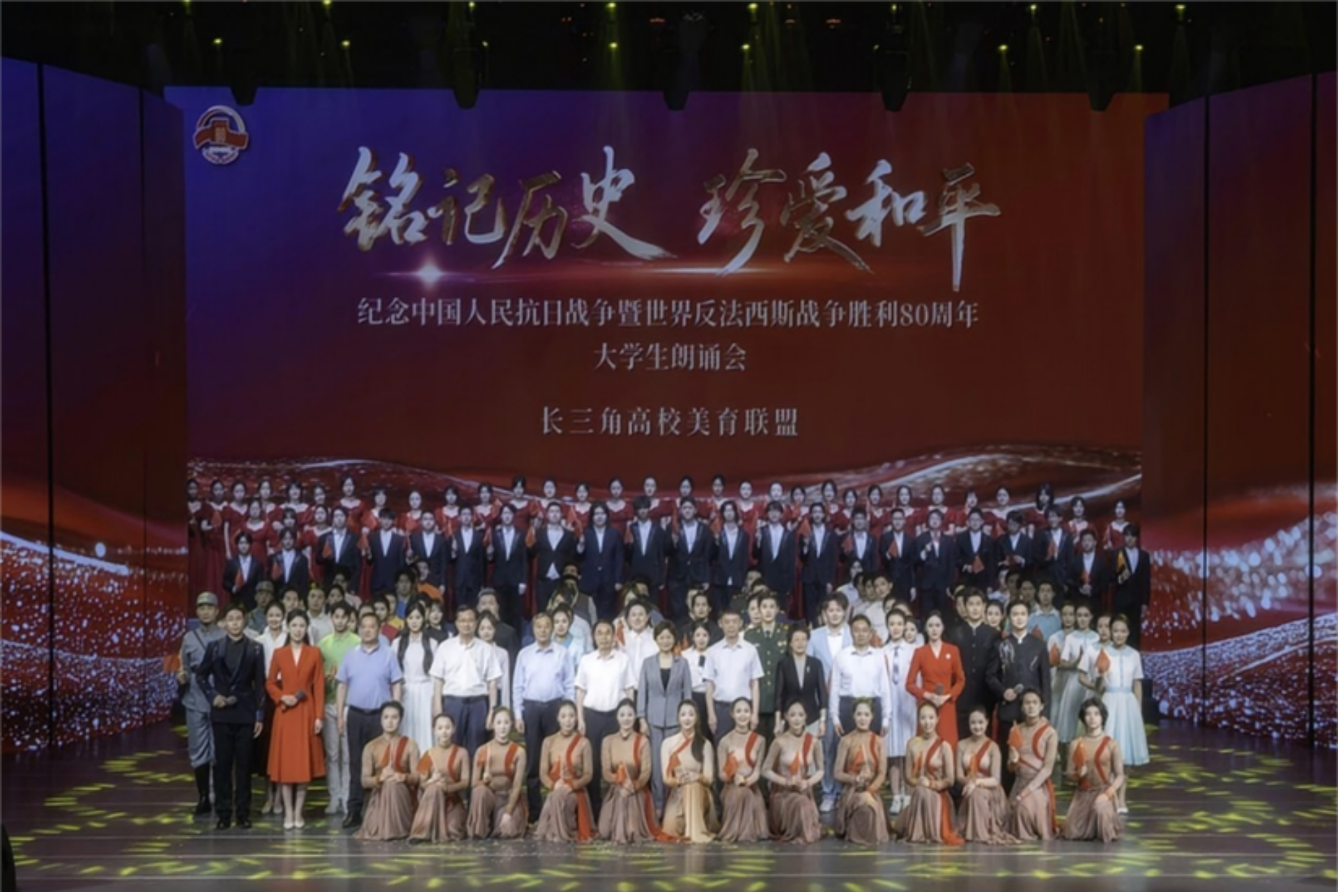 6月7日,长三角高校“铭记历史,珍爱和平”纪念中国人民抗日战争暨世界反法西斯战争胜利80周年大学生朗诵会在南京农业大学滨江校区举行。活动由长三角高校美育联盟主办,江苏省大学生艺术团联合会和江苏省学校美育协会协办,南京农业大学承办。江苏省委宣传部副部长徐宁、江苏省教育厅二级巡视员李金泉、南京农业大学党委书记王春春出席活动。我院受邀参加并组织师生代表共计40人作为现场观众共同见证这一精彩时刻,为本次朗诵会贡献了正德学子青春力量。