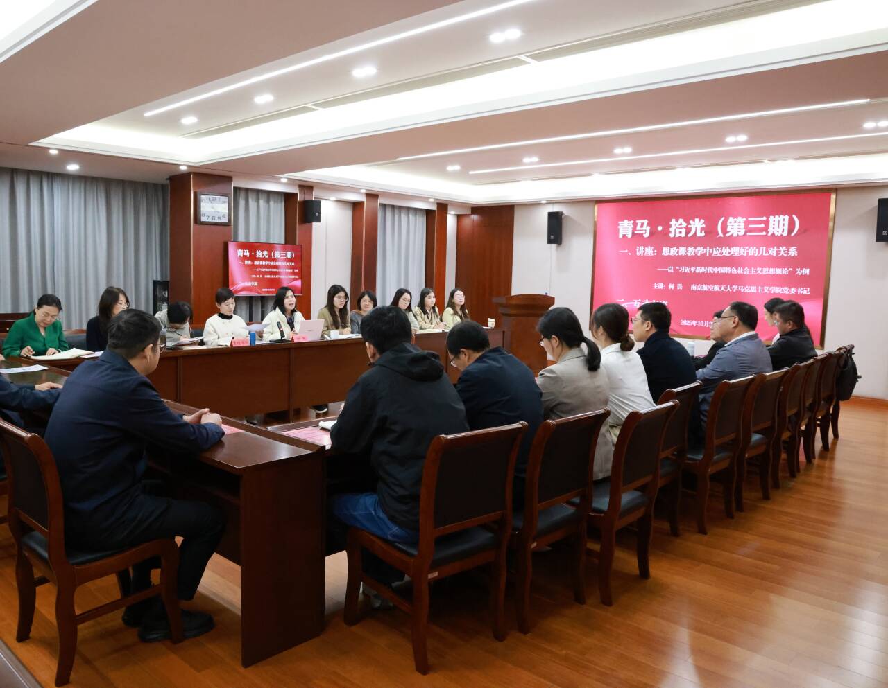 10月27日,思政教研部举办第三期“青马·拾光”成长沙龙,特邀南京航空航天大学马克思主义学院党委书记何畏教授担任主讲嘉宾,围绕“思政课教学中应处理好的几对关系——以’习近平新时代中国特色社会主义思想概论’为例”开展成长沙龙。南京铁道职业技术学院、钟山职业技术学院、金肯职业技术学院、南京视觉艺术职业技术学院等共建学校思政课教师代表共同参与。我院思政教研部主任李颖主持本期沙龙。