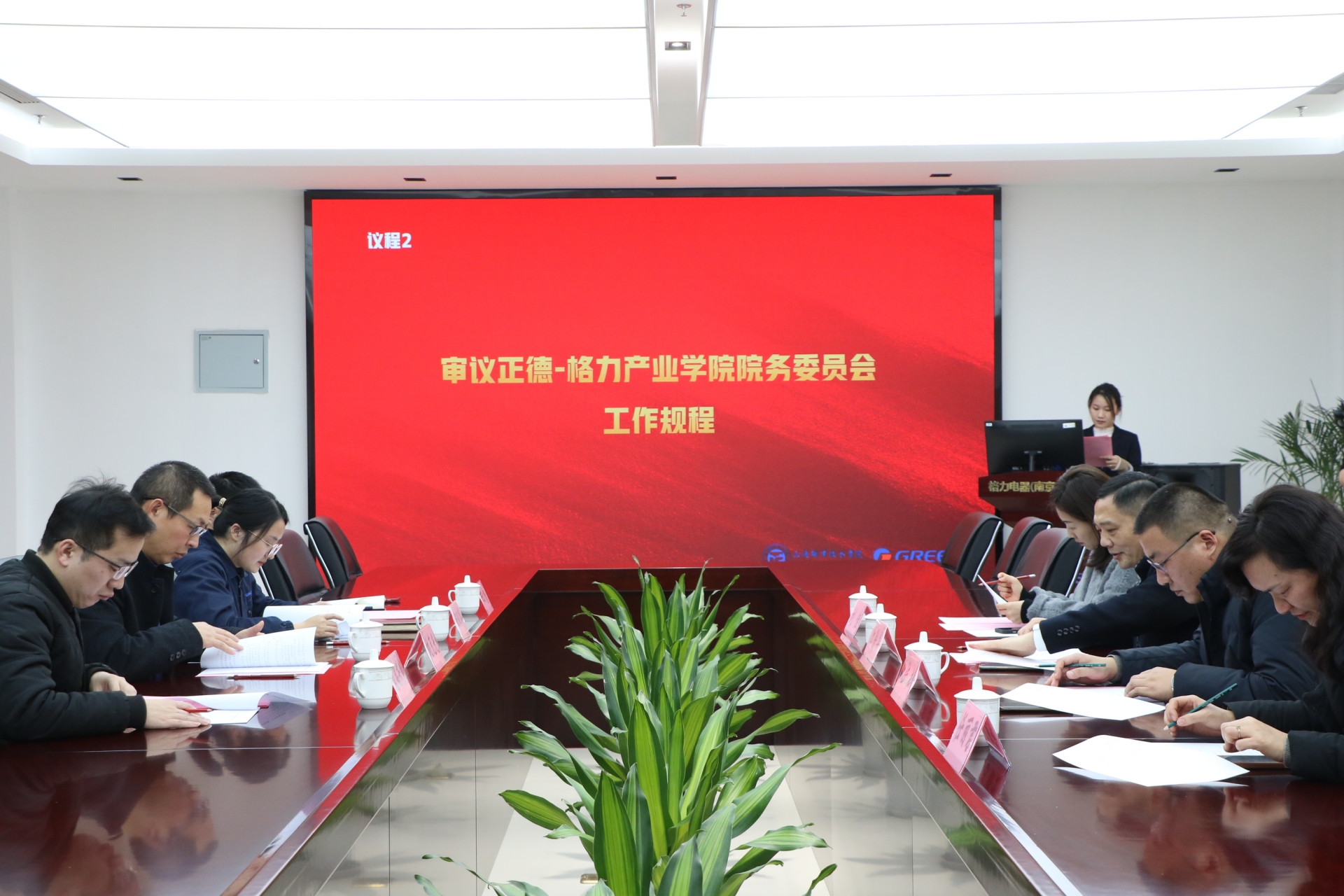 正德-格力产业学院院务会审议通过《正德-格力产业学院院务委员会工作规程(试行)》《正德-格力产业学院院务委员会成员建议人选》《正德-格力产业学院表彰决定》《正德-格力产业学院2024年工作计划》,研讨了“江苏省首批现代产业学院”申报事宜,通过了关于将“正德-格力产业学院”更名为“正德-格力现代智造产业学院”的决议。