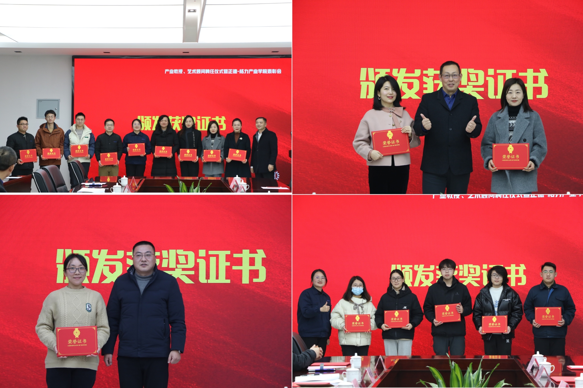 产业教授、艺术顾问聘任仪式暨正德-格力产业学院表彰会伊始,集体观看“正德-格力产业学院两周年专题片”,视频回顾了产业学院两年来的建设和发展历程。为强化“双师型”教师队伍建设,深化企业员工与未来员工融通培养、推动企业高级专家深度参与我院专业建设、科学研究、人才培养与教育教学,推动我院教师服务企业、深度参与公司艺术活动指导,现场举行了正德职业技术学院产业教授聘任仪式和格力电器(南京)有限公司艺术顾问聘任仪式。格力电器(南京)有限公司总经理刘克光受聘担任我院产业教授,我院教师孟馨受聘担任格力电器(南京)有限公司艺术顾问。