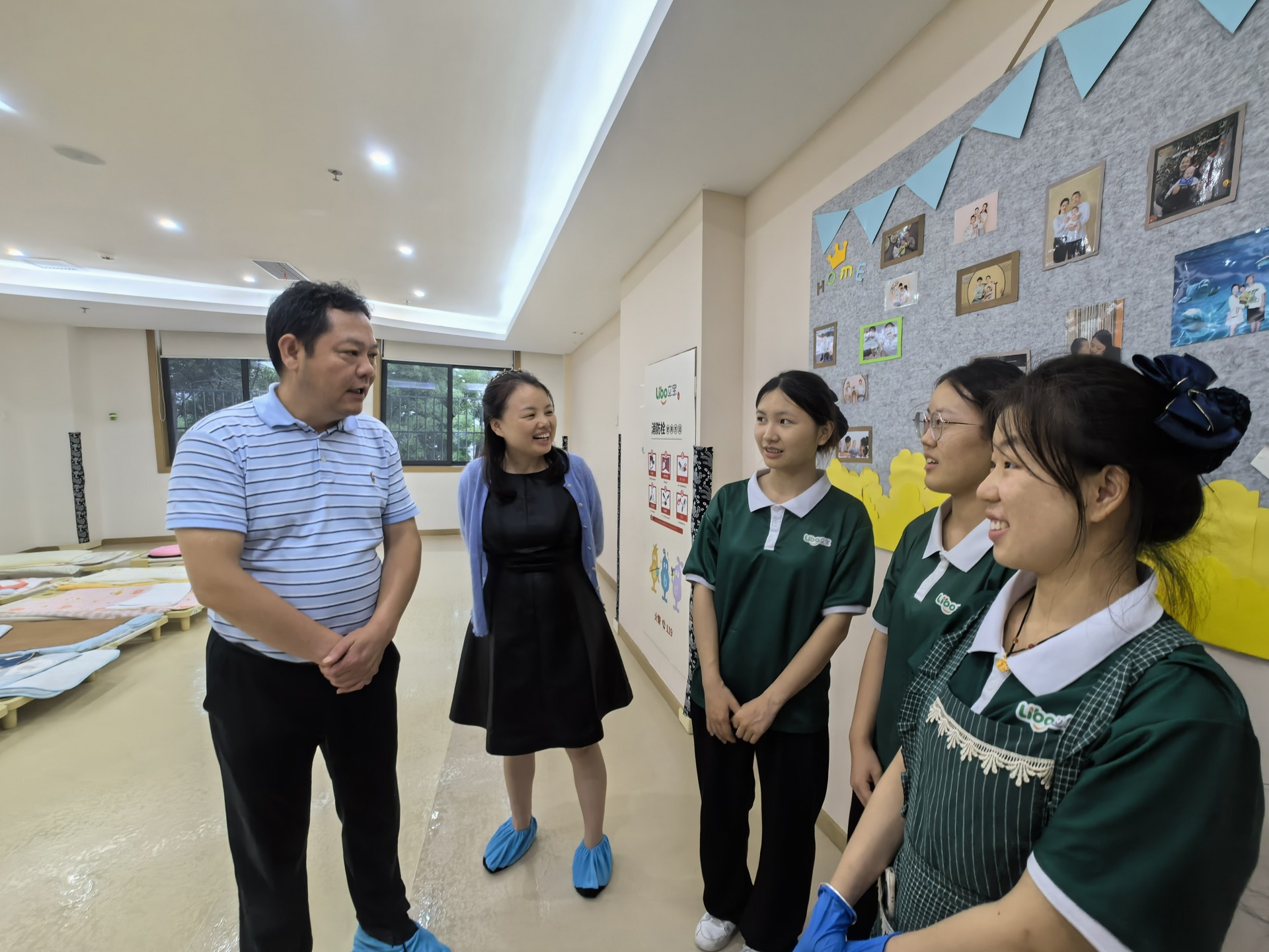 期间,在江苏立宝托育有限公司总经理张小茱、副总经理刘立峰的陪同下,孙永荣一行实地调研了立宝托育中心示范园、紫琅社区园,现场参观了托育园内设施和环境,深入了解了立宝园课程设置、管理模式、运营方式以及安全措施,并看望了在园顶岗实习的学生。